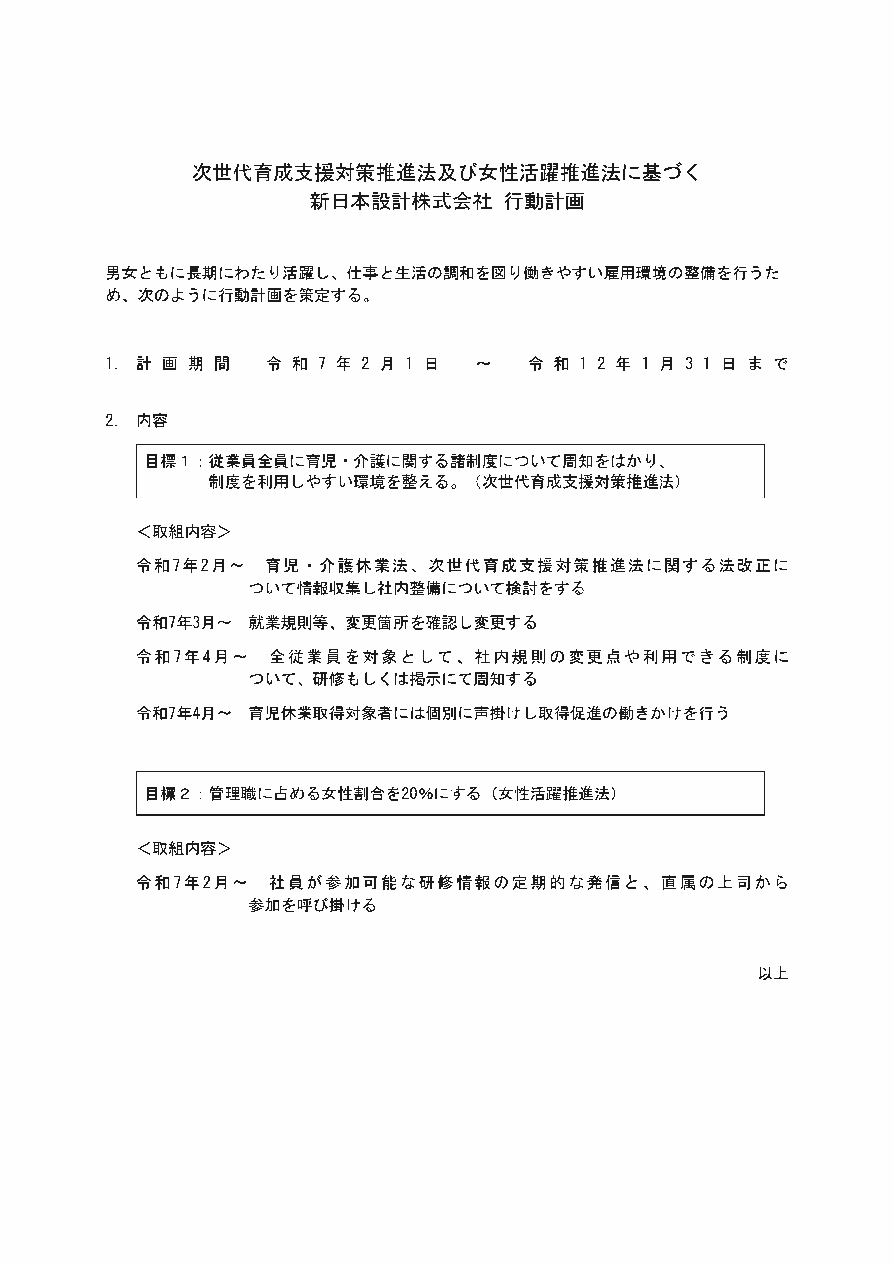 当社はこのたび、次世代育成支援対策推進法及び女性活躍推進法に基づく行動計画を策定しました。